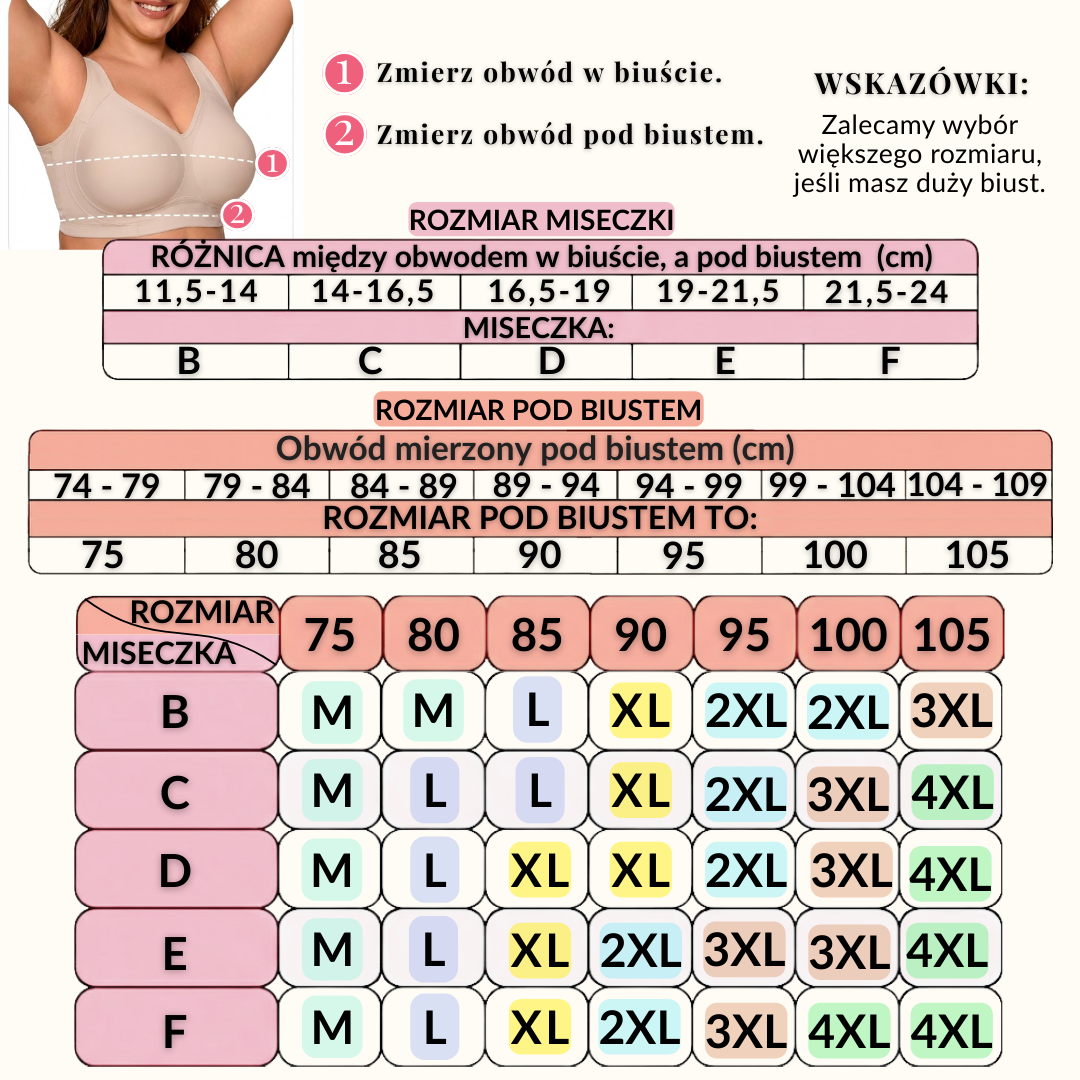 🔒 Trzyma biust w miejscu – koniec z poprawianiem.
