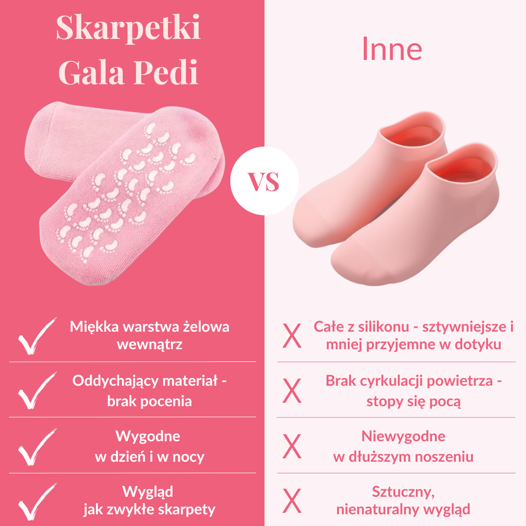 Gala Pedi nie zużywa się jak krem czy maseczki. Zakładasz, zdejmujesz, myjesz i znowu używasz. Jednorazowy zakup, a efekt pielęgnacji zostaje z Tobą na zawsze.