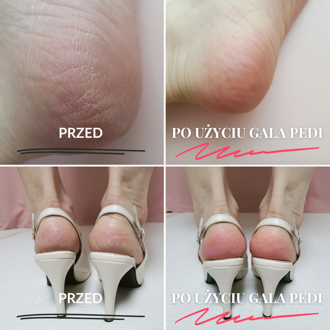 Szorstkie pięty i twardy naskórek znikają już po pierwszej sesji. Gala Pedi działa jak profesjonalna maska zmiękczająca, która sprawia, że stopy stają się gładkie i aksamitne w dotyku. Potwierdzone przez kobiety, które już noszą Gala Pedi: